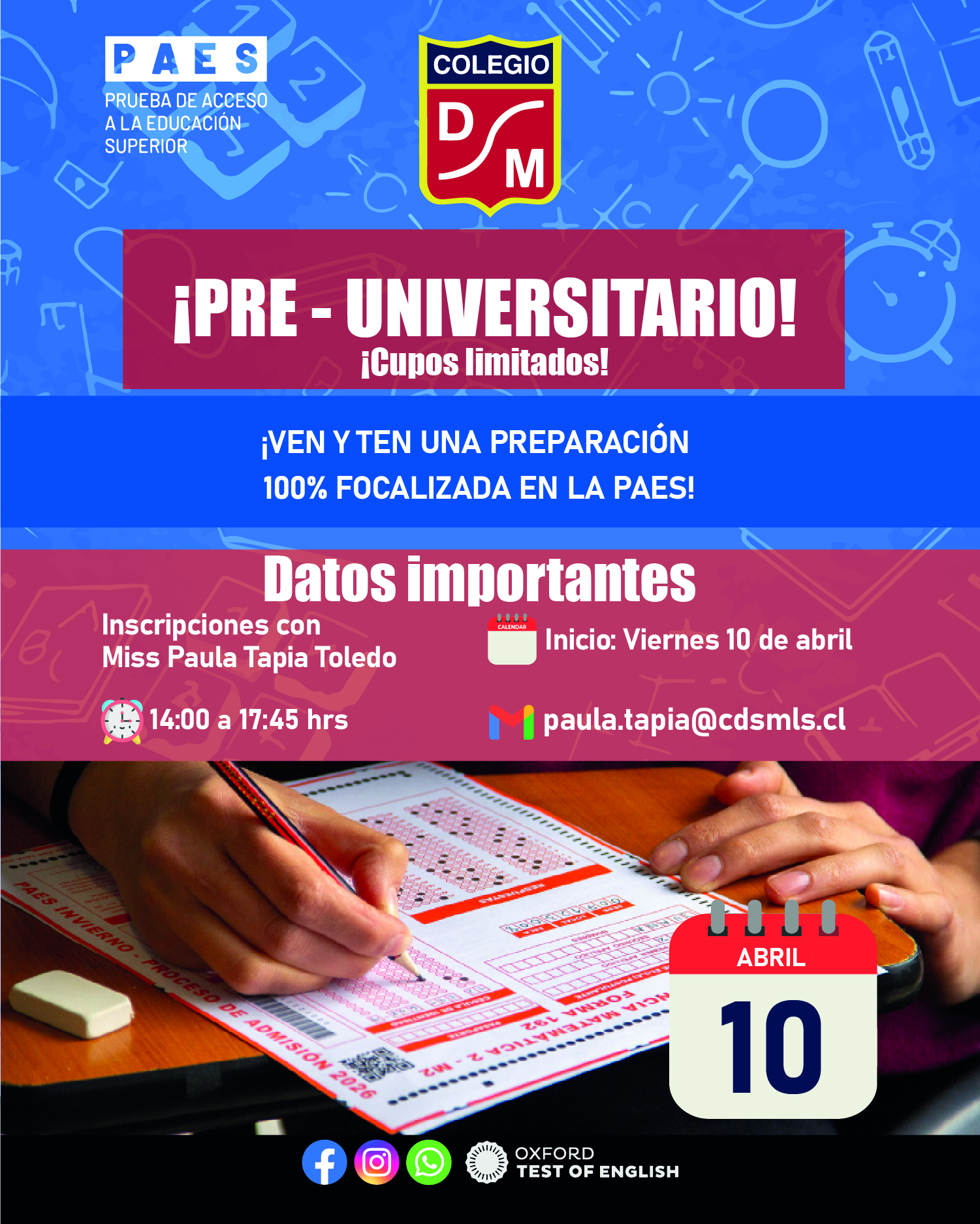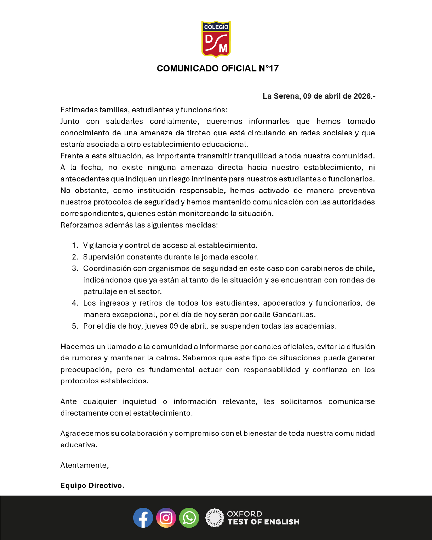 Inscríbete Ahora! Admision 2026 Haz clic aquí! ANUNCIOS IMPORTANTES Anuncios importantes 9 Abr 2026 Comunicado Oficial N°17 Anuncios importantes 8 Abr 2026 Inscríbete Ya! al Pre-Universitario Anuncios importantes 8 Abr 2026 Día del Autismo y Diversidad Anuncios importantes 7 Abr 2026 Día del Ciberacoso Anuncios importantes 2 Abr 2026 Conoce Nuestra Orquesta Anuncios importantes 2 Abr 2026 Torneo de Fútbol en Nuestro Colegio Anuncios importantes 9 Abr 2026 Comunicado Oficial N°17 Anuncios importantes 8 Abr 2026 Inscríbete Ya! al Pre-Universitario Anuncios importantes 8 Abr 2026 Día del Autismo y Diversidad Anuncios importantes 7 Abr 2026 Día del Ciberacoso Anuncios importantes 2 Abr 2026 Conoce Nuestra Orquesta Anuncios importantes 2 Abr 2026 Torneo de Fútbol en Nuestro Colegio ACCESOS DIRECTOS Notas Net apoderados NOTAS NET TEL CORREOS ALUMNOS LISTA DE ÚTILES HORARIO CLASES REGLAMENTO EFEMÉRIDES Efemérides 7 Abr 2026 Natalicio Gabriela Mistral Efemérides 7 Abr 2026 Día de la Educación Rural Efemérides 6 Abr 2026 Semana de la Matemática Efemérides 2 Abr 2026 Día de Concienciación sobre el Autismo Efemérides 21 Mar 2026 Día de la Astronomía Efemérides 21 Mar 2026 Día Internacional de las personas con Síndrome de Down